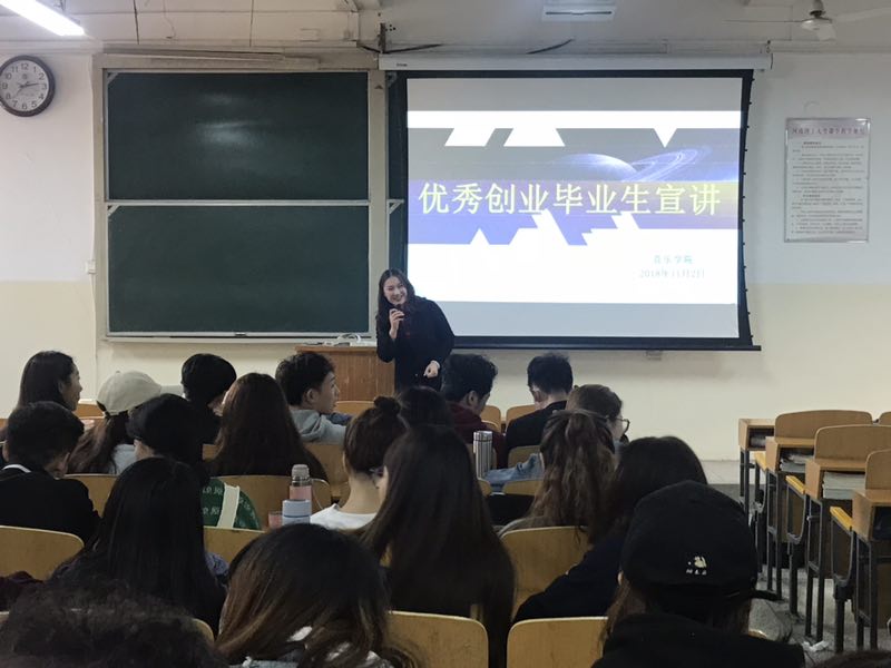 2018年11月2日下午14:30,我院在一号教学楼举办了优秀毕业生创业宣讲。宣讲由陈慧洁老师主持,学院部分学生与老师一同聆听了我院优秀创业毕业生、新贝音儿乐国际早教创始人冯玉娟的精彩演讲。