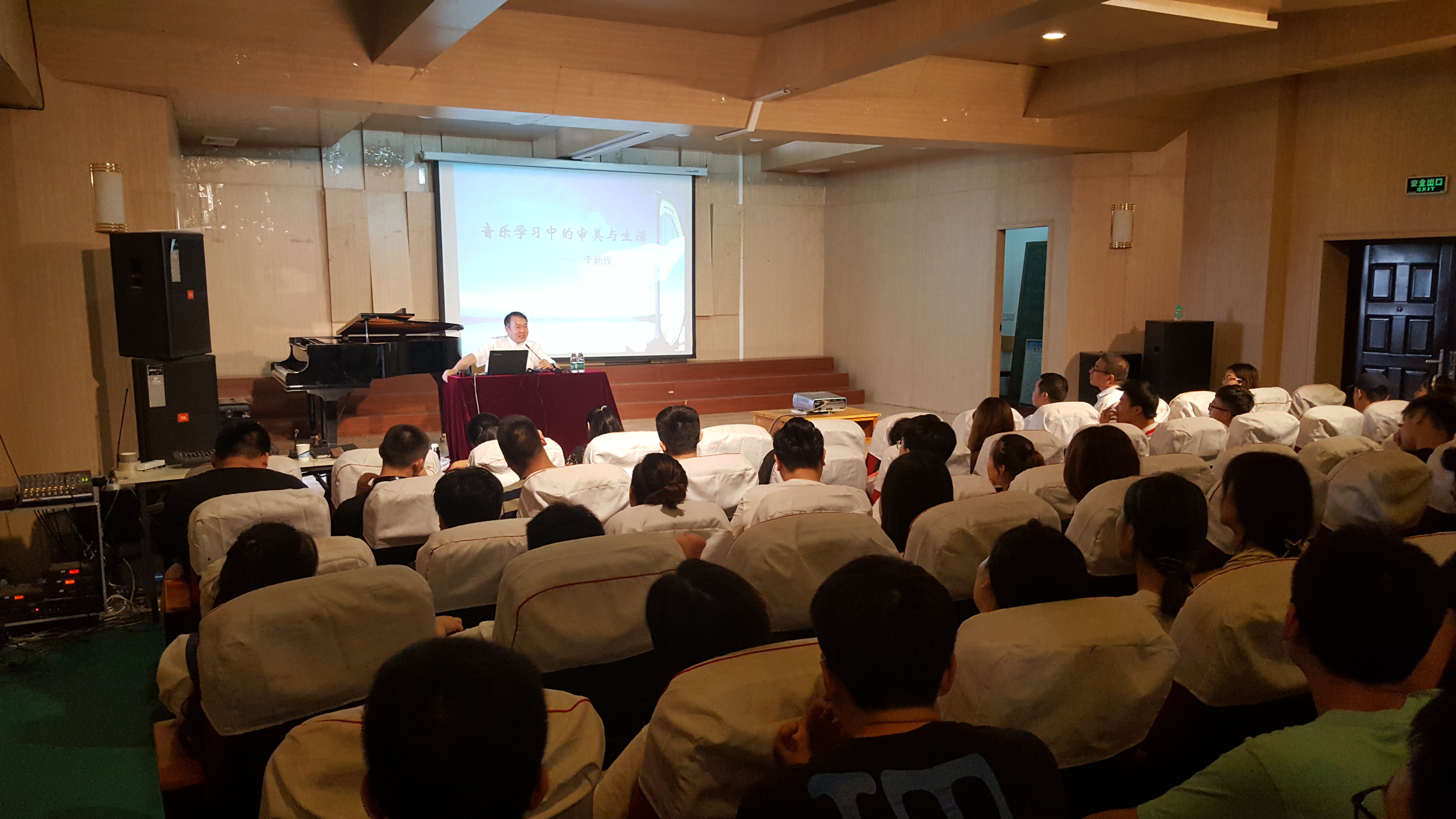7月3日下午,学院院长李新现教授在文综楼音乐厅以《音乐学习中的审美与生活》为题,为2017级、2018级全体学生150余人上了一堂精彩纷呈的思政理论课。学院党总支副书记王建军,党政办、学工办、团委等部门老师和辅导员一起聆听了讲课。