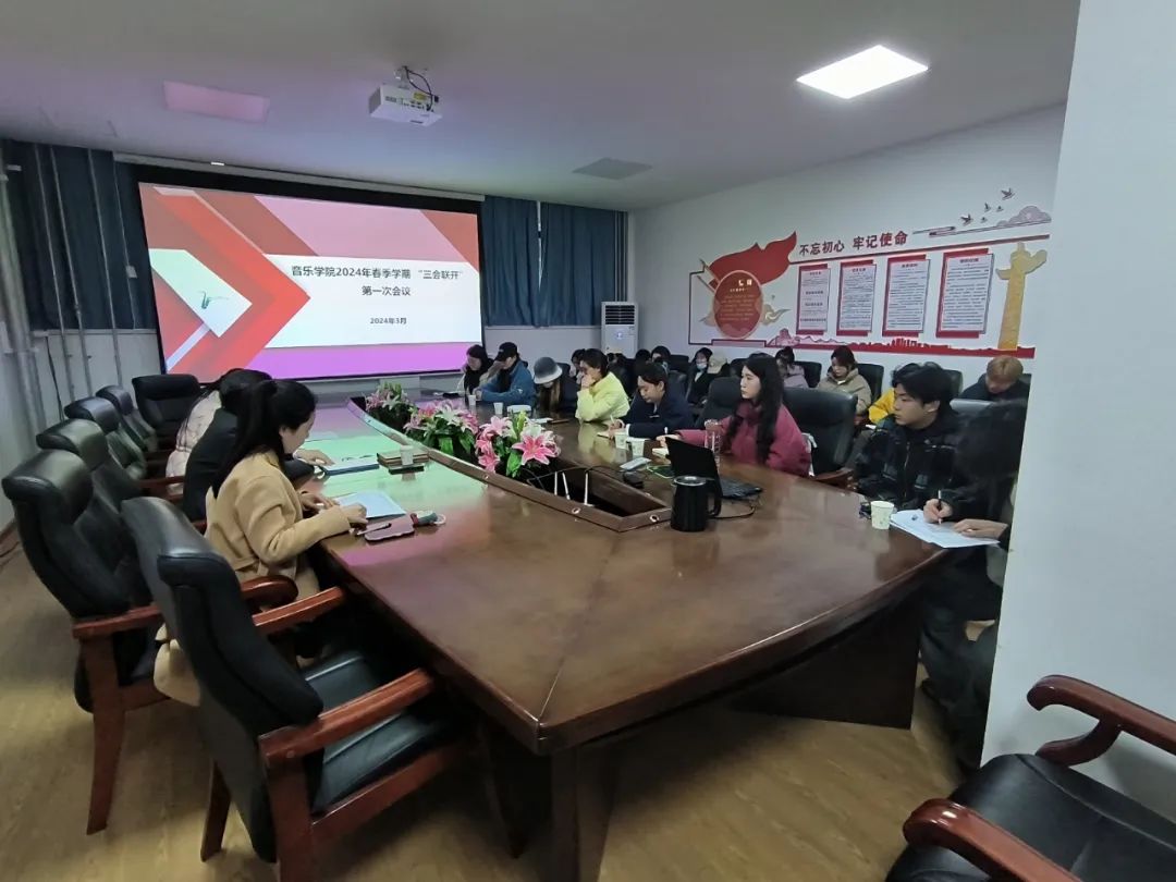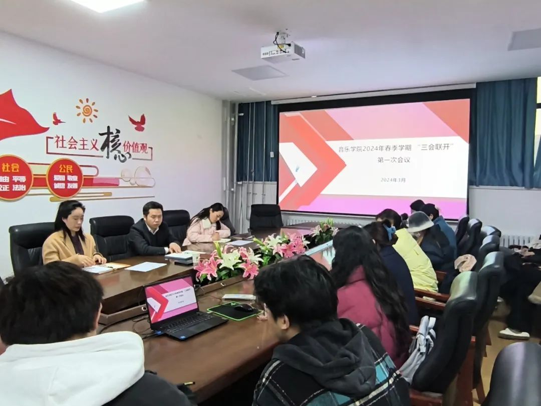 3月5日,学院学生工作“三会联开”(即班长联席会、团支部书记例会和学生会工作例会)暨学院2024年春季学期第1次学生工作例会在音乐学院楼101会议室召开。各班班长、团支部书记,学生会各部门负责同学共30余人参加会议。学院党委副书记王建军、团委书记闫燚、学工办负责人荆朦等老师出席会议。会议由党委副书记王建军主持。会议伊始,各班班长、团支书以及学生会各部门通报了开学以来学院班级学风建设、宿舍安全、课堂纪律以及团支部建设等情况。荆朦老师就学院2024年学生工作要点工作进行了安排部署,就当前学生返校后各项具体学生工作事宜进行了强调。闫燚老师重点安排了学院2024年共青团的中心工作,对目前正在开展的啦啦舞比赛、春季运动会筹备以及团学工作品牌建设进行了详细布置。