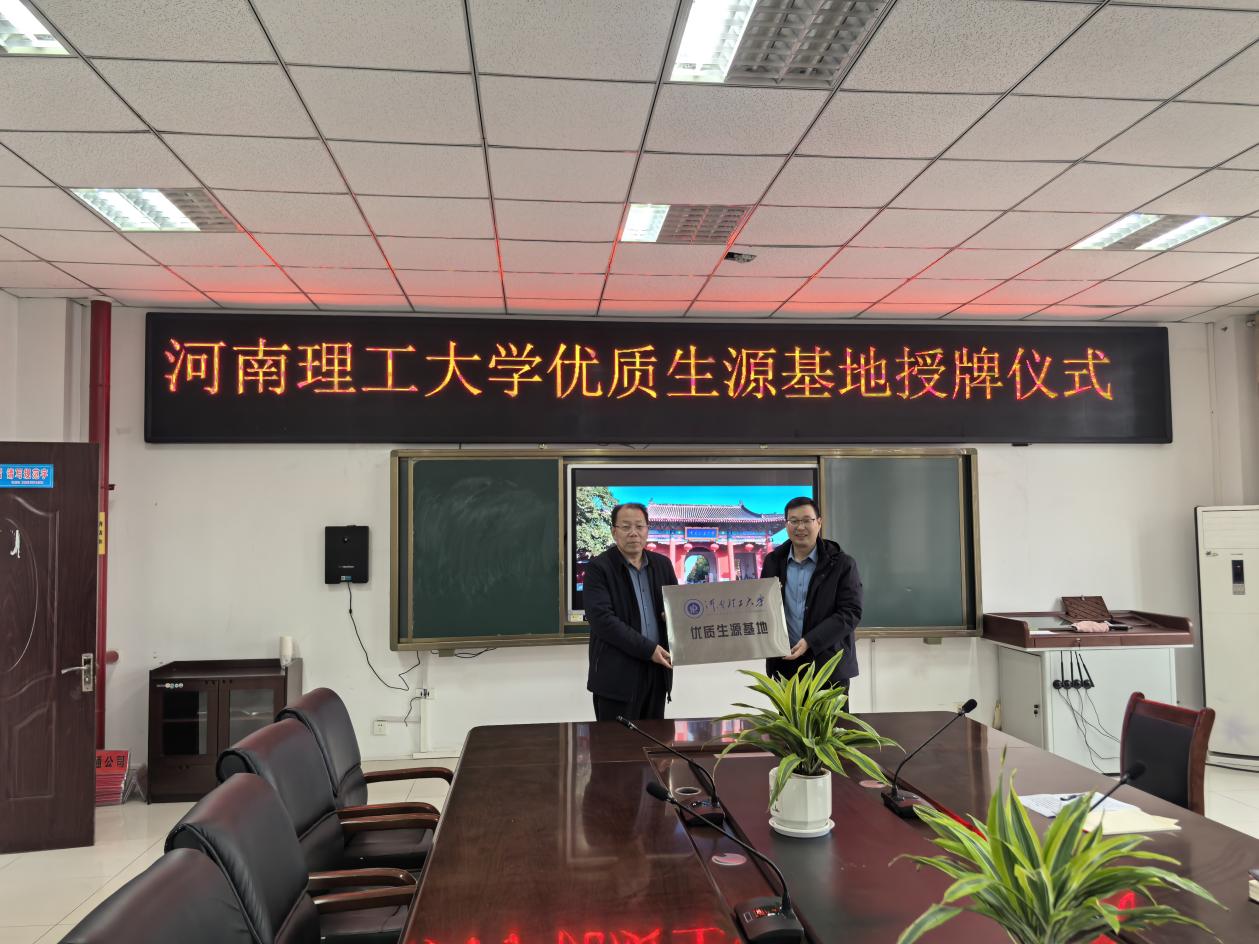 在两所学校的座谈会上,贾宝先对河南理工大学办学历史、办学特色、专业设置、师资力量、招生政策以及我校人才培养和近五年毕业生就业情况等进行了介绍,随后播放了河南理工大学宣传片。两所学校领导均表示希望能以此次宣传工作为契机,进一步加强双方的交流,为学生提供专业的择校参考,为我校输送更多优质生源。最后,与会领导举行“优质生源基地”牌匾授予仪式。