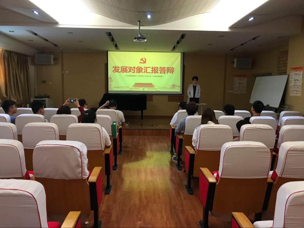 2018年5月25日上午11:00,在我院视听教室604举行2018年上半年发展对象入党答辩。赵伟利老师,组织员李团结老师,学院学生党支部所有党员以及入党积极分子、发展对象参加了此次会议。
