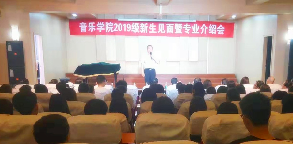 李新现首先代表学院向2019级新生的到来表示热烈欢迎。他从学校优良的办学传统、深厚的文化底蕴以及青春活力的音乐学院等几个方面为同学们做了深入的介绍。从师资力量、专业设置、学位点建设、团学工作、文化建设等多个角度,全面细致的讲解了学院的办学情况与发展前景。他勉励全体2019级新生:一是要不忘初心、牢记使命。青年学子是正值青春美好年华,无论走多远,无论来自何方,都不要忘记了来时的路,不要忘记了当初的梦想和肩负的使命。二是要立德修身,勤勉求是。要从优秀的中华传统文化宝库中吸取精神涵养,树立正确的人生观、世界观和价值观,做敢担当、能担当,德才兼备的音乐学子。三是要树立目标,做好规划。大学四年的生活相比漫长人生,稍逊即逝,要早立志、立大志,做好职业生涯规划,让大学生涯不留遗憾。最后,李院长祝愿大家在即将开始的大学学习生活中梦想成真,祝愿大家飞的更高、更远。