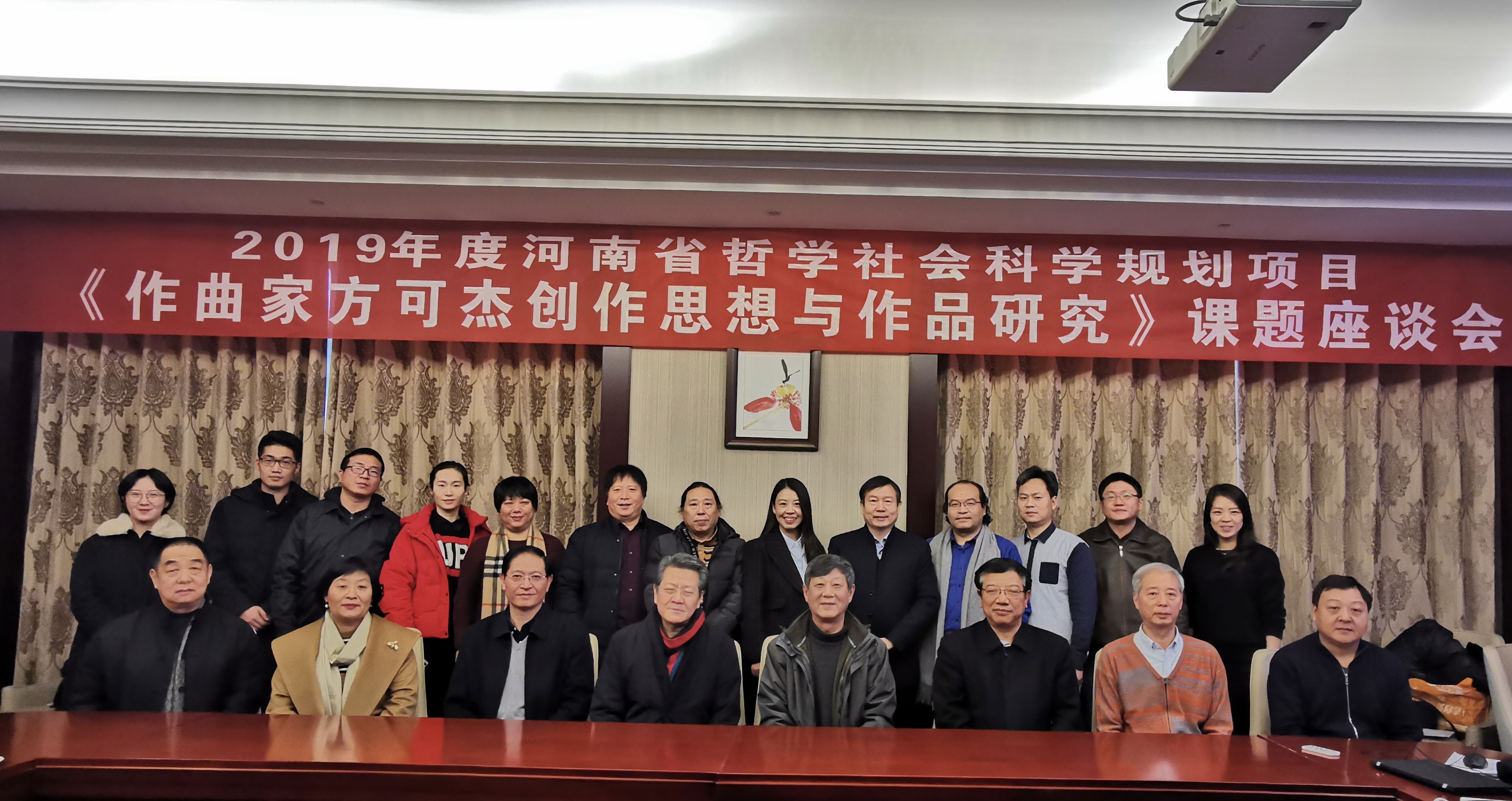 豫中霜雪晚,冬日阳光暖。为贯彻落实习近平新时代中国特色社会主义思想和省委十届十次全会精神,充分发挥省社科规划项目的示范引导作用,2019年度河南省哲学社会科学规划项目《作曲家方可杰创作思想与作品研究》课题座谈会于12月6日上午在郑州市紫荆山宾馆召开。座谈会由我院院长李新现教授主持。