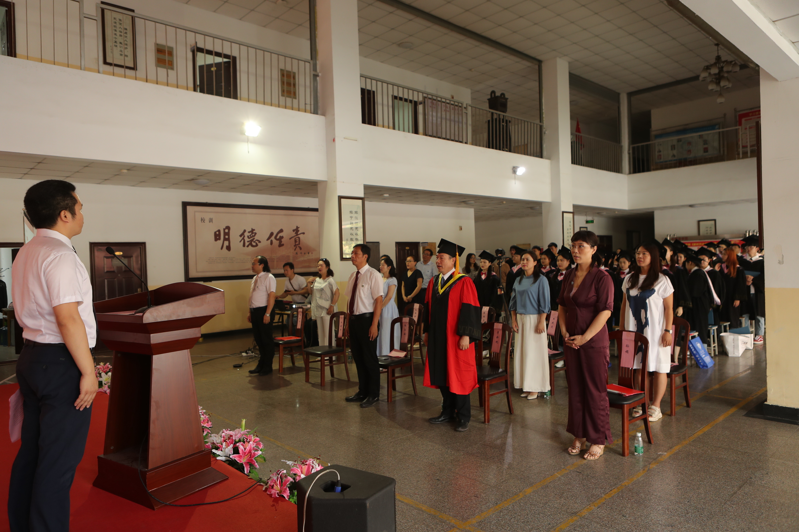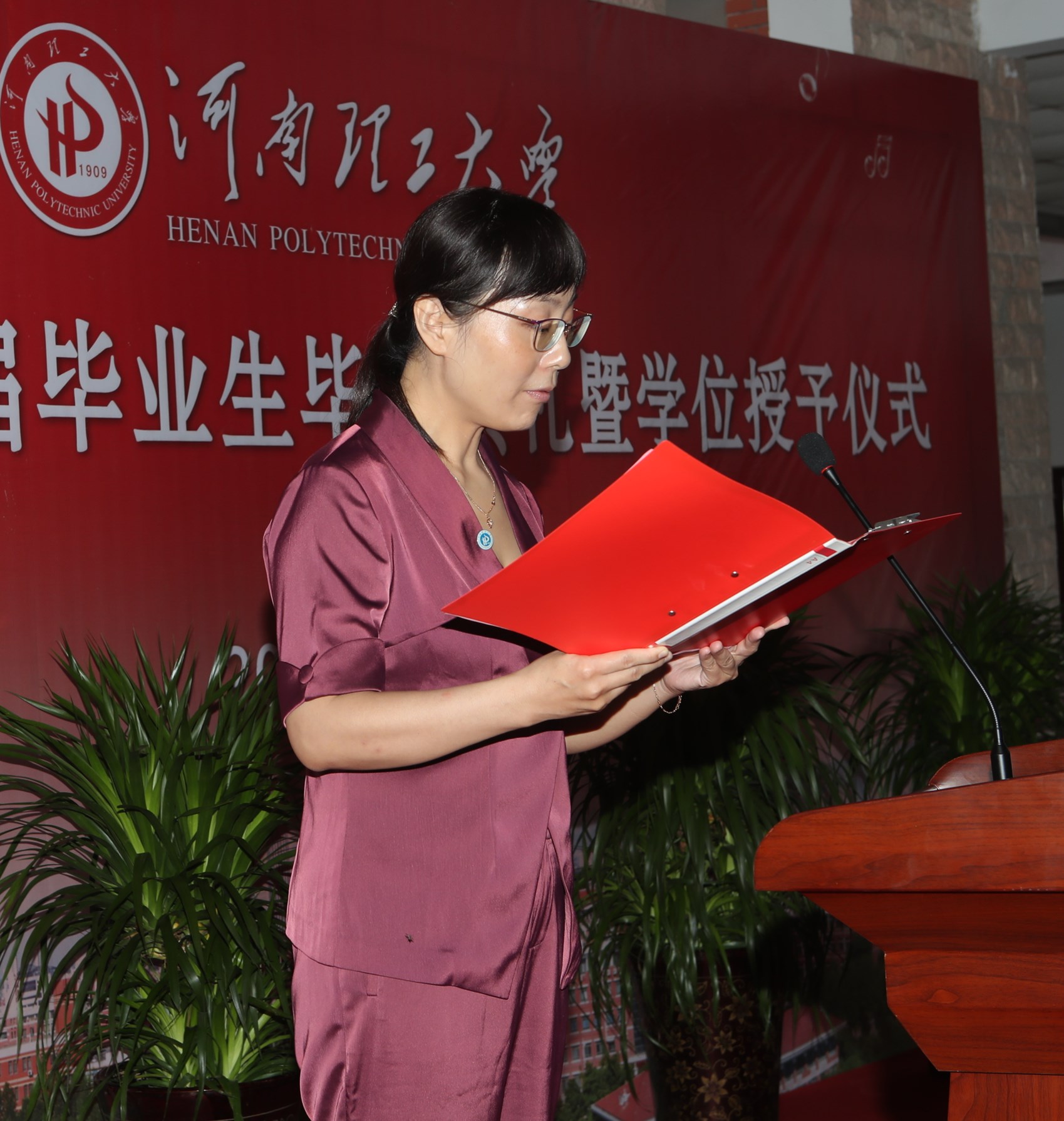 仪式在雄壮的国歌声中拉开帷幕。党总支书记杨玉海为优秀毕业生代表颁发了荣誉证书。院长李新现为毕业生代表颁发了毕业证书,并为获得学位的同学一一授予学位并合影留念。
