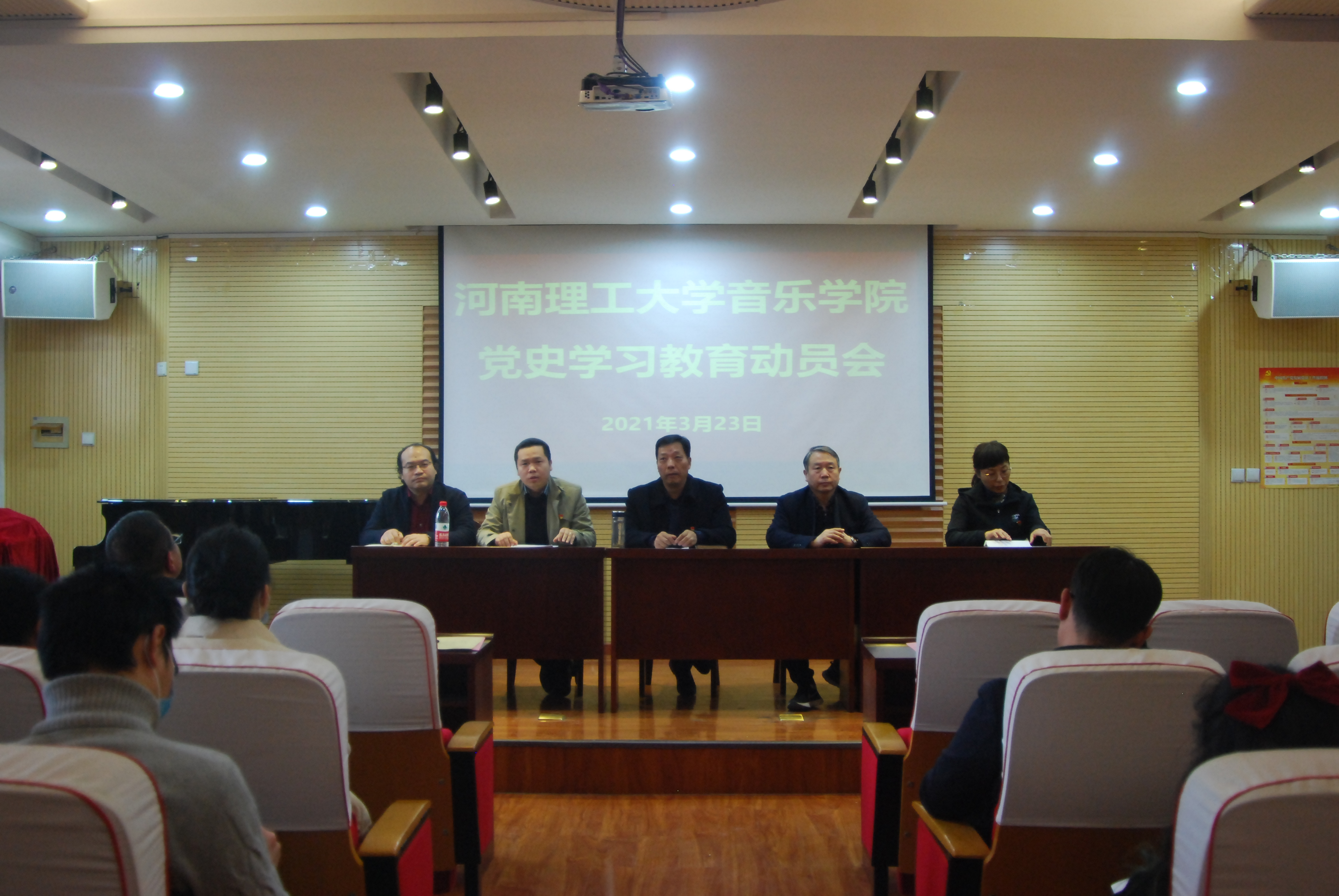 3月23日下午,学院在文综楼六楼视听教室召开党史学习教育动员会,深入学习贯彻习近平总书记在党史学习教育动员大会上的重要讲话精神,贯彻落实校党委党史学习教育工作会议精神,研究部署学院党史学习教育工作。学院处级领导班子、科级干部、教工党支部书记以及专职辅导员参加会议,会议由党总支副书记王建军主持。