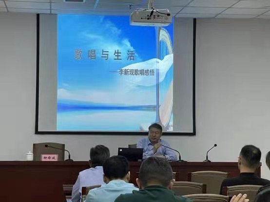讲座中,李新现语言智慧、风趣生动,不仅亲身示范演唱了《绒花》《唱支山歌给党听》《不忘初心》等歌曲,还现场教授学员简单实用的发声技巧,让学员们在轻松愉快的学习氛围中确切感受到了歌唱带来的振奋人心的激情,感受到了音乐带来的无穷力量。
