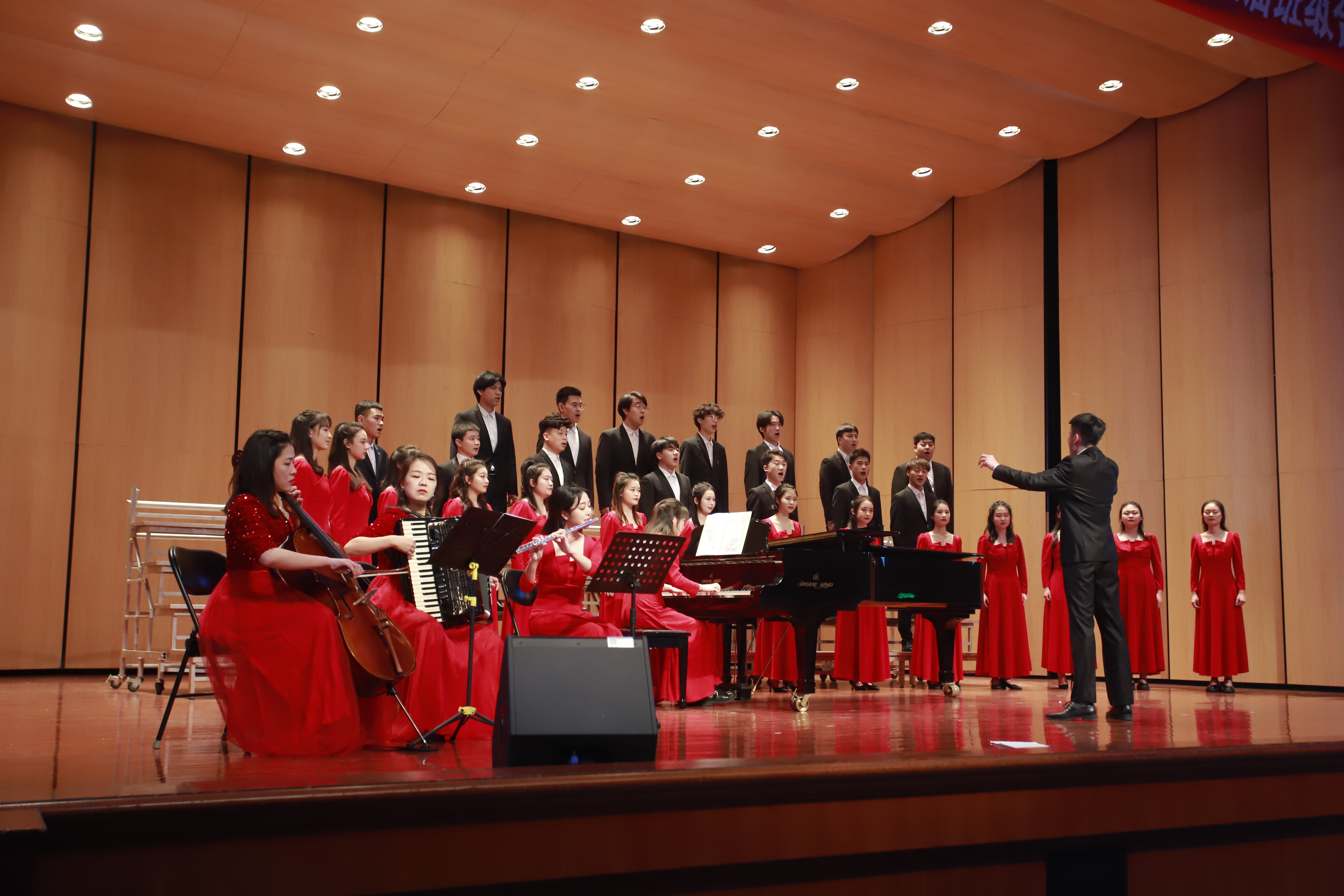 12月9日,学院党史学习教育系列之纪念“一二·九”爱国运动86周年歌咏比赛暨第四届“唱响青春”班级合唱比赛在明德楼音乐厅圆满落幕。校党委常委、工会主席郭相春、财务处处长王建华、校办副主任范永明等应邀出席;校党委宣传部副部长刘春德,学工部(处)副部(处)长、心理健康教育与咨询中心副主任贾宝先,招生就业处副处长曹中秋以及学院各系部主任等担任评委;学院领导班子及全体师生共同观看了此次比赛。