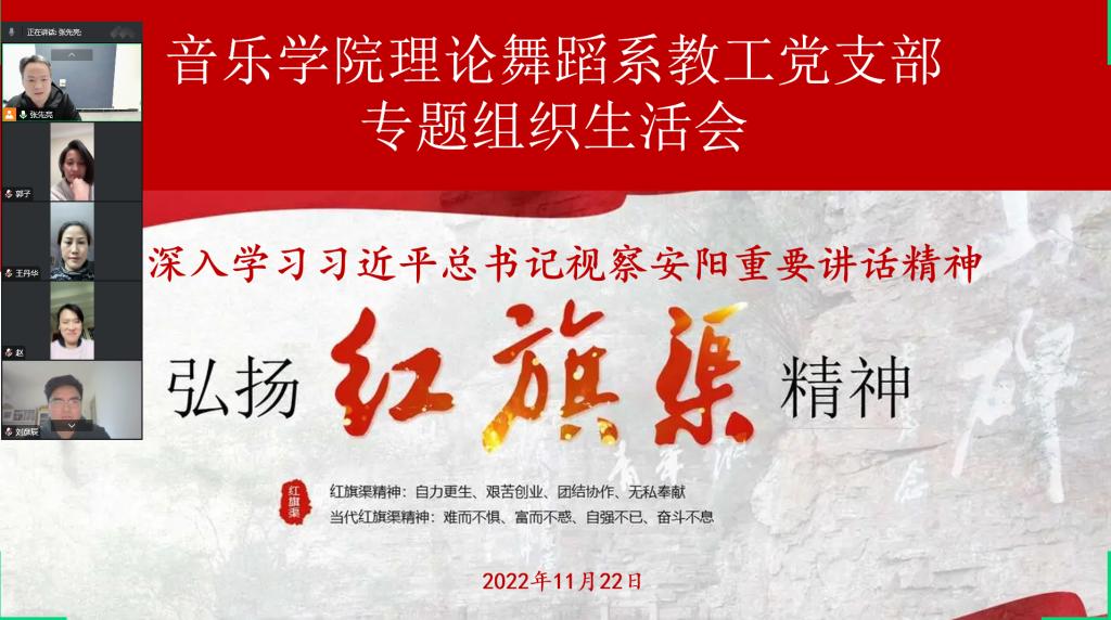3. 理论舞蹈系教工党支部。时间:11月22日。地点:线上,全勤,按计划开展组织生活。