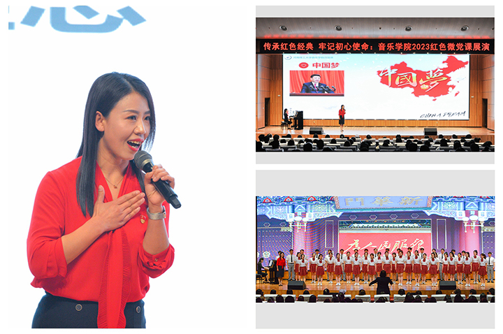 学院精心打造的微党课展演,紧密围绕红色主题,充分发挥专业特色,将红色歌曲所蕴含的红色文化有机融入党课教学过程中,用艺术手法传承红色基因,彰显了艺术浸润+课程思政的有效融合,让经典红歌“唱起来”,革命故事“讲起来”,教育引导党员师生坚定不移听党话、跟党走,厚植爱党、爱国、爱社会主义的情怀,为建设国内一流特色高水平大学、全面建设社会主义现代化国家建功立业。