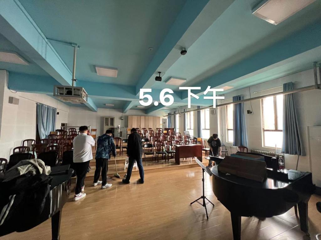在为期一周的劳动工作实践中,同学们按照预先安排的实践区域进行分区清扫,包括学院楼外广场、北环道路上的枯枝干叶、车辆的规范停放以及琴房、音乐厅、舞蹈教室等公共域进行彻底清理,等等,学院附近到处都是同学们辛勤劳动的身影。