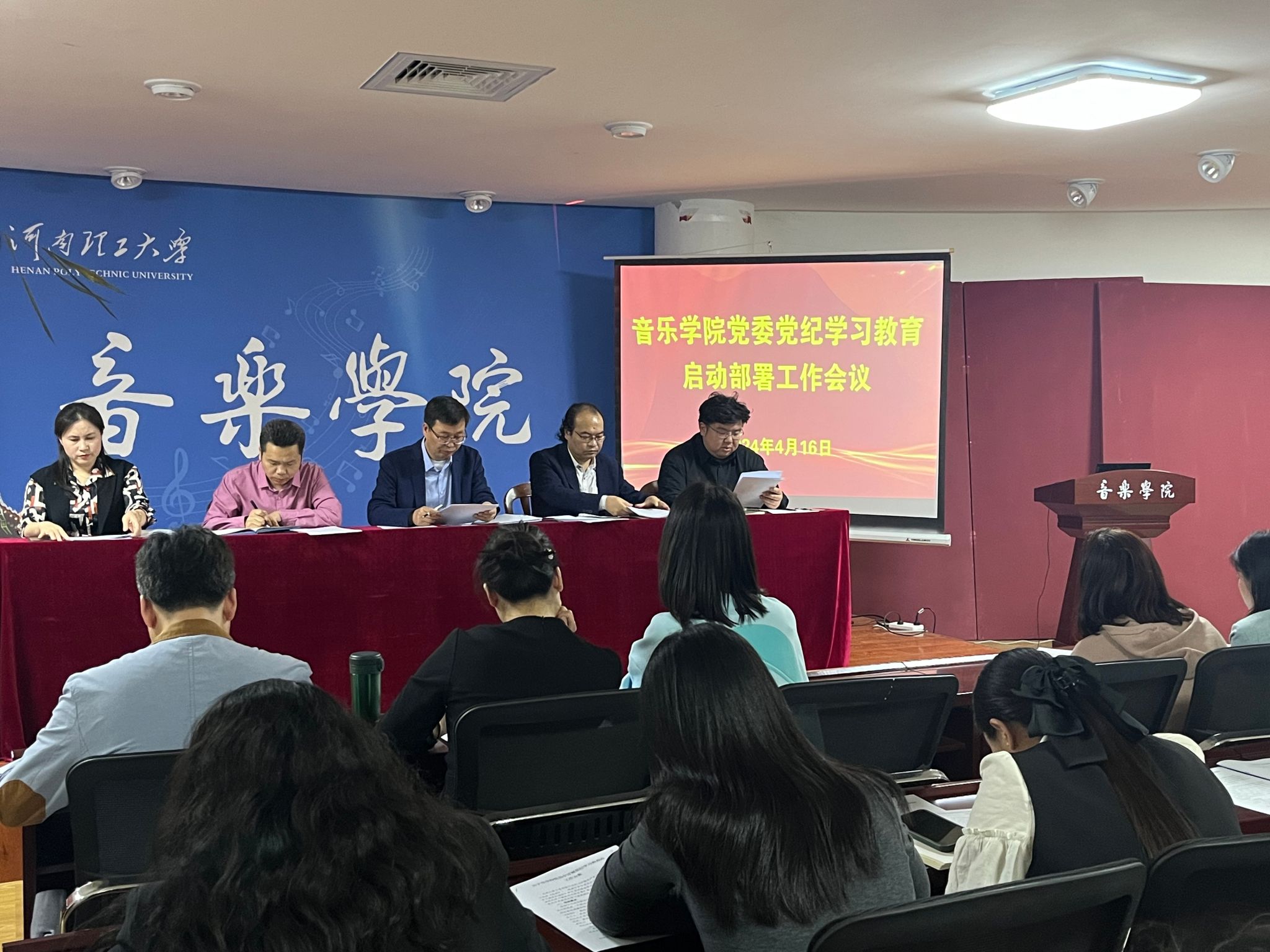 音乐学院于4月16日下午在二楼会议室召开党委扩大会议,对党纪学习教育工作进行了启动部署。学院领导班子成员、党委委员、各党支部支委、学生党员代表等参加会议。会议由学院党委书记贾宝先主持。