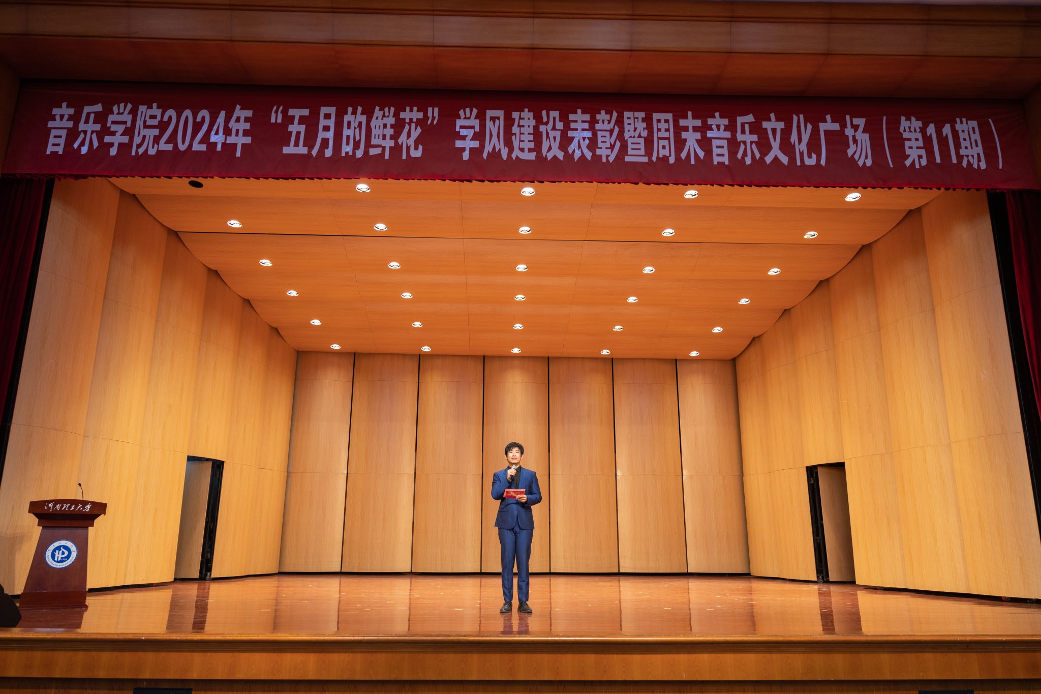为落实立德树人根本任务,着力推进学院优良学风创建,5月11日晚,音乐学院在明德楼音乐厅举办了“五月的鲜花”学风建设表彰暨周末音乐文化广场活动。校团委、研工部、招就处等职能部门负责人以及音乐学院全体师生参加活动。