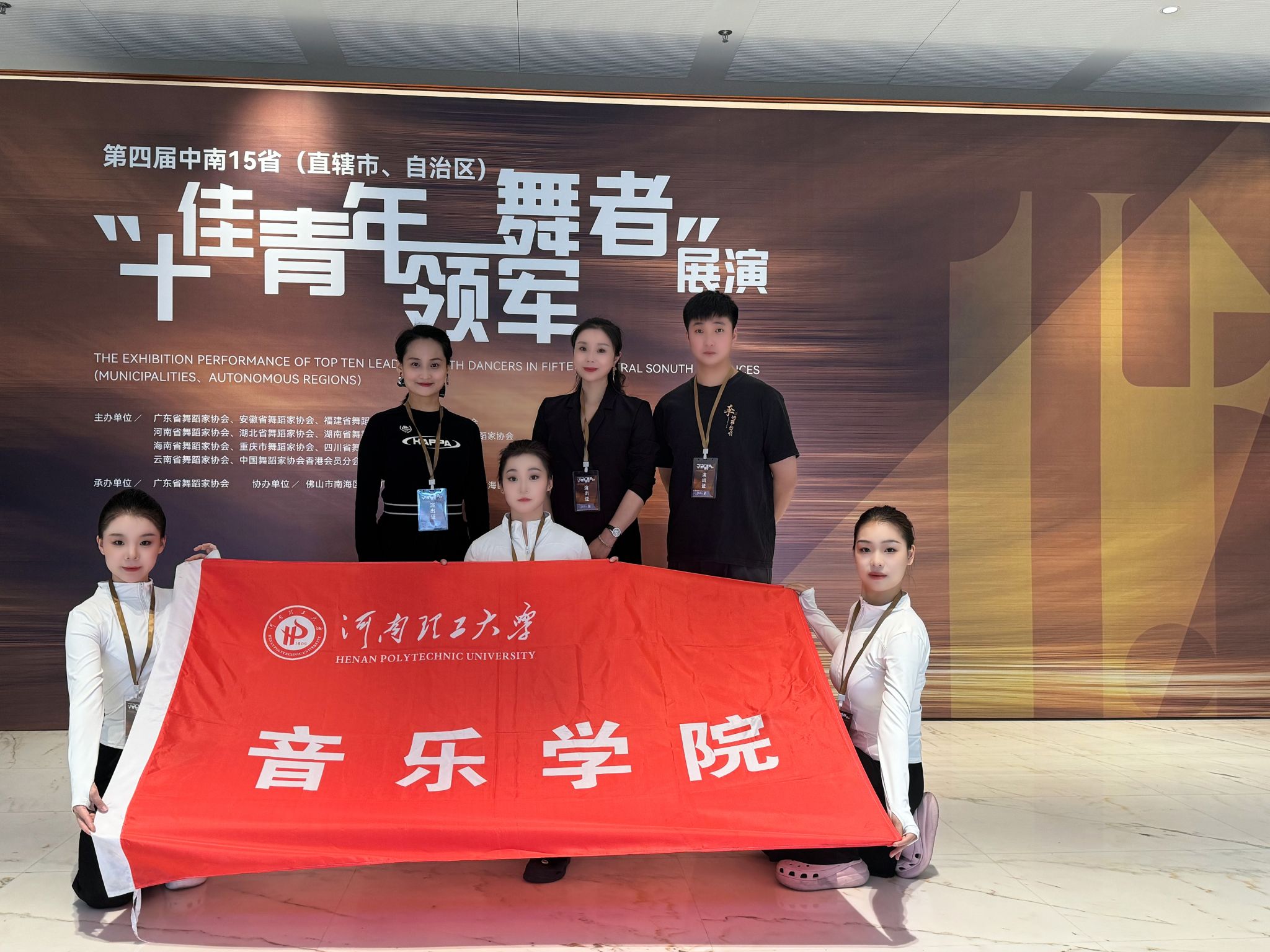 11月23日晚,第四届中南15省(自治区、直辖市)“十佳青年领军舞者”展演活动,在广东省佛山市樵山文化中心剧院落幕。我校音乐学院教师郭慧娟、赵静、王庆花的原创舞蹈作品《逆风而行》荣获院校组“编导银奖”,表演者贺子育、聂欢欢、陈昕冉三位同学荣获“青年优秀舞者”称号。