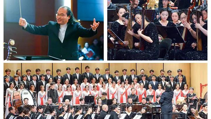 “如果有人来问我,这是什么地方?我就骄傲地告诉他,这是我的家乡……”12月17日晚,明德楼音乐厅座无虚席,现场观众如痴如醉地享受了一场丰盛的音乐大餐。在校党委、市侨联、市欧美同学会和学校侨联的大力支持下,由宣传部、统战部、校工会主办,音乐学院承办的“情满中华——‘同心’民族管弦乐团成立仪式暨2025新年音乐会”成功举办。学校相关职能部门、部分学院负责人,各民主党派和统战团体负责人及全校600余名师生共同聆听了音乐会。