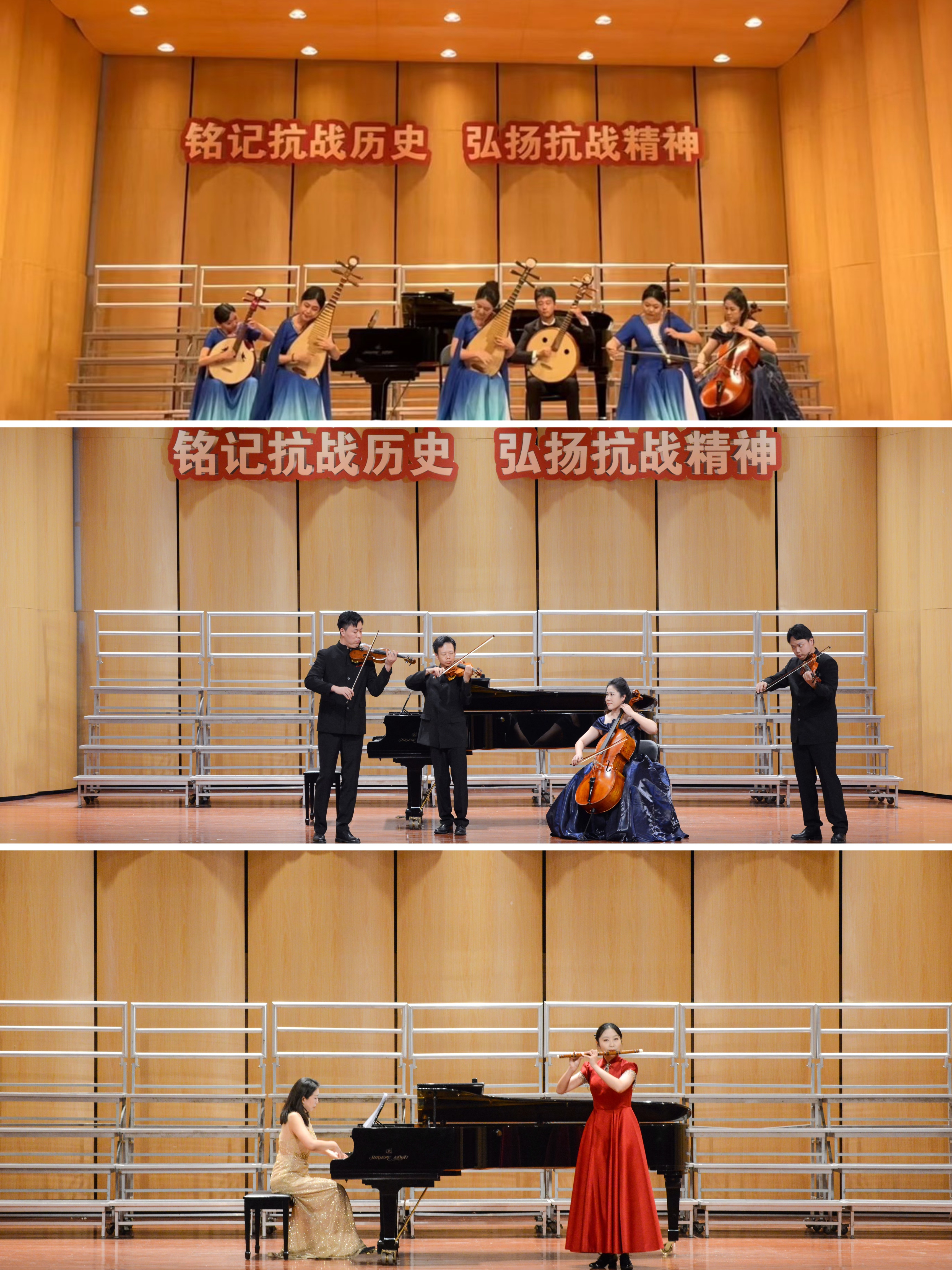 本次音乐会既是落实学校美育浸润行动的生动实践,也是音乐学院教育教学成果的重要展示和音乐与思政融合育人的有益探索。音乐会秉承“音乐叙史·以歌载道·美育浸润”的创作理念,发挥音乐学院学科专业优势,创新“音乐+思政”模式,打破传统课堂的边界,将思政阵地延伸至音乐厅,通过一堂多元、鲜活、丰富的沉浸式“音乐厅里的思政课”,教育引导师生铭记抗战历史,弘扬抗战精神,以情怀和使命,为加快“双一流”创建和全方位推动特色鲜明高水平一流大学建设汇聚强大力量。