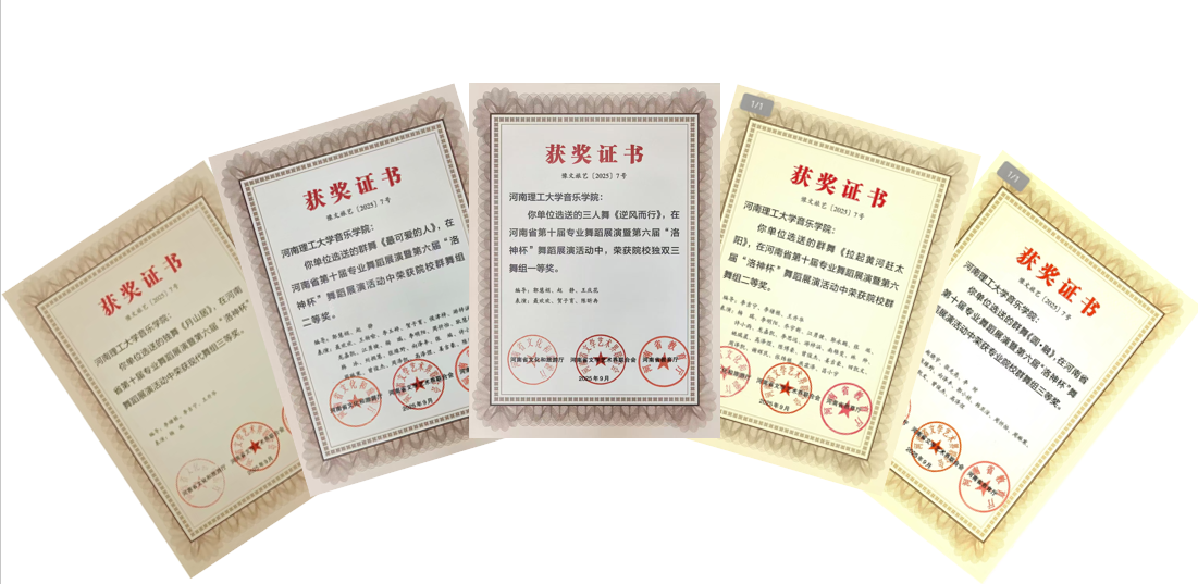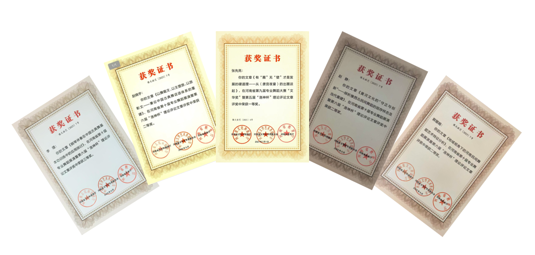 本次活动是河南省舞蹈艺术领域具有重要影响力的专业赛事,每三年举办一届,汇聚了全省专业院团、艺术院校及新文艺群体的中坚力量。我校音乐学院高度重视,大力宣传动员,精心组织实施,指导和协助师生创作、排练和申报,共提交作品10项。经过初赛、决赛两轮激烈角逐,我校提交的作品全部获奖,其中,展演作品类、理论评论文章类各5项。
