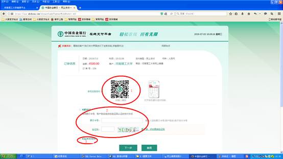 注:a、缴费方式有三种:1、农行app扫码支付。2、K码支付。3、K宝支付。
