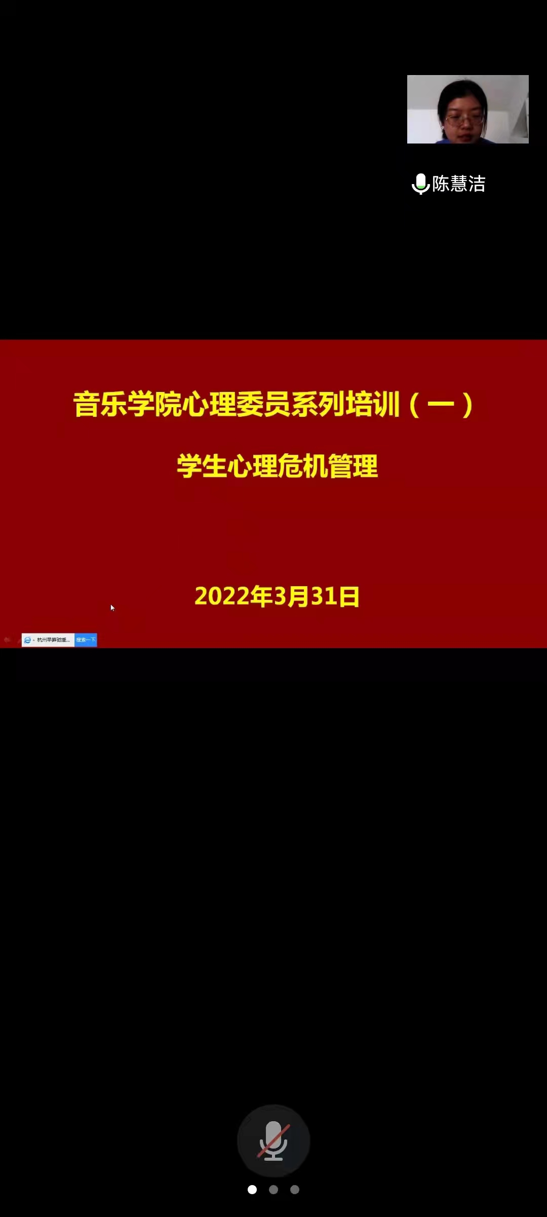 3月31日下午4点30分,我院举办了2022年度首次心理委员培训会,该会议采用线上培训的方式,由学院心理辅导员陈慧洁老师主讲,全体心理委员参加会议。
