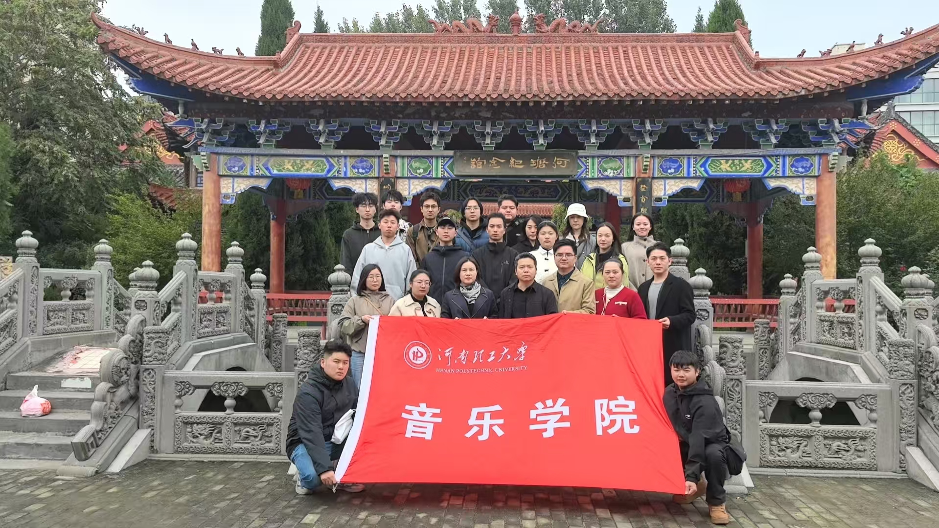 【河南理工大学音乐学院师生在何瑭纪念馆前的集体合影】