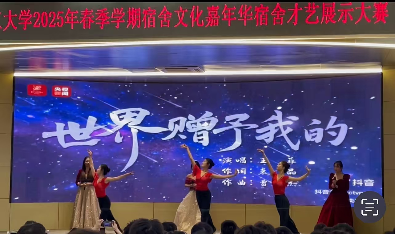 在随后举行的宿舍才艺大赛中,参赛兰六317宿舍凭借唱歌与舞蹈相结合的节目《世界赠与我的》 惊艳全场,成员们默契的舞步、清亮的歌声与饱满的情感完美融合,深深打动了评委与观众,最终斩获大赛一等奖。