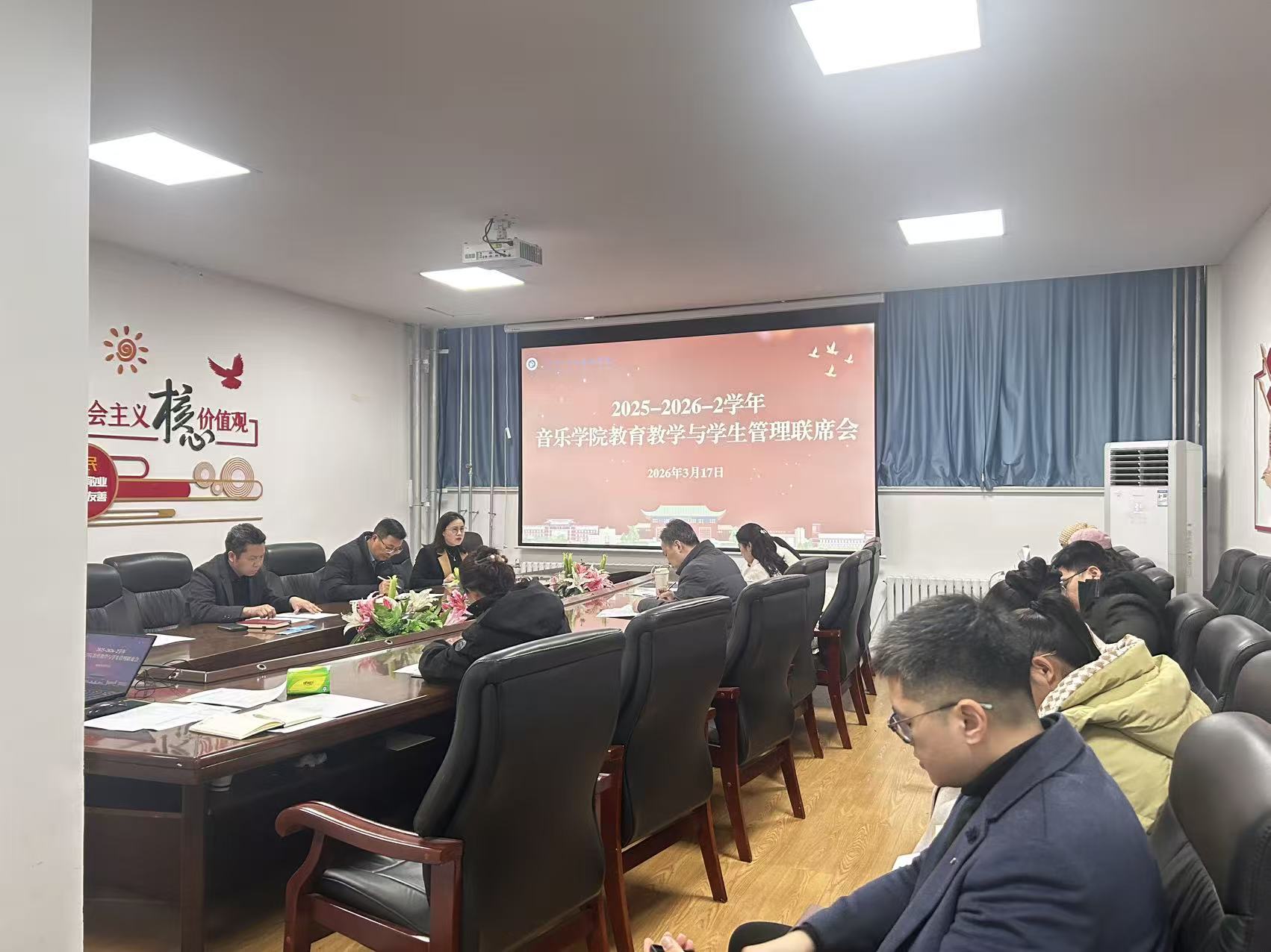 3月17日,音乐学院在101会议室召开2025-2026学年第2学期第1次教育教学与学生管理联席会议,专题研究部署精准推进学业困难帮扶工作。学院领导,教科办、学工办、院团委及各系部负责人,全体辅导员及相关帮扶教师代表出席会议,会议由副院长王庆花主持。