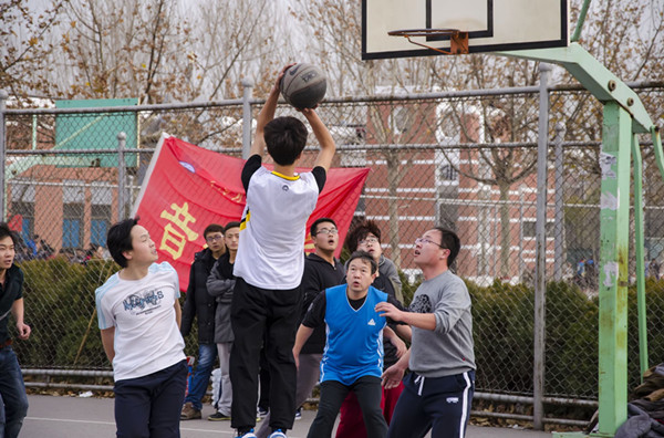 球赛在裁判员的一声哨响中拉开了序幕。一方是教师队,平时驰骋在三尺讲台上的他们,这时生龙活虎,激情四射。当然,我们的新生队也毫不示弱,个个不乏精彩的进攻,快速突破。双方激烈奋战,很是有一番篮球明星的味道。双方的啦啦队在场下也较量着,加油助威,呐喊欢呼,让这寒冷的天气也充满了活力。最终以新生队的胜出而落下了帷幕。