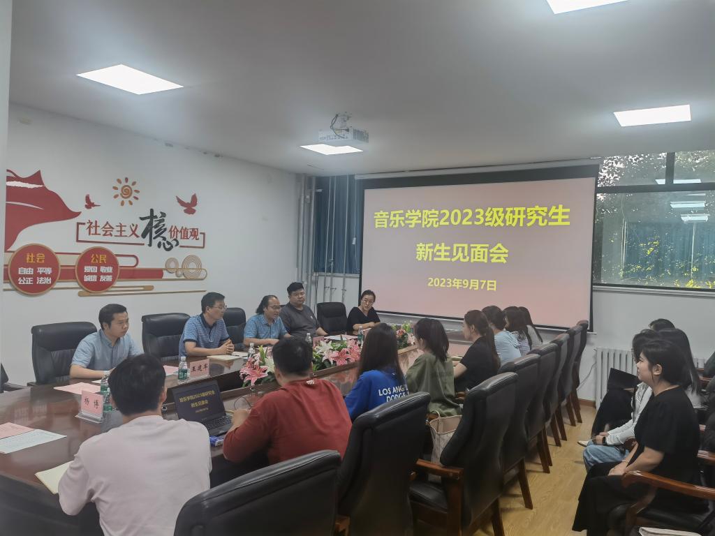 9月7号下午15时,我院在学院楼101会议室举行2023级音乐硕士研究生见面会暨新生入学教育。学院党政领导贾宝先、马安平、赵杰等受邀出席见面会,研究生秘书庞娜、杨博以及2023级全体硕士研究生参加见面会。会议由党委副书记、研究生辅导员王建军主持。