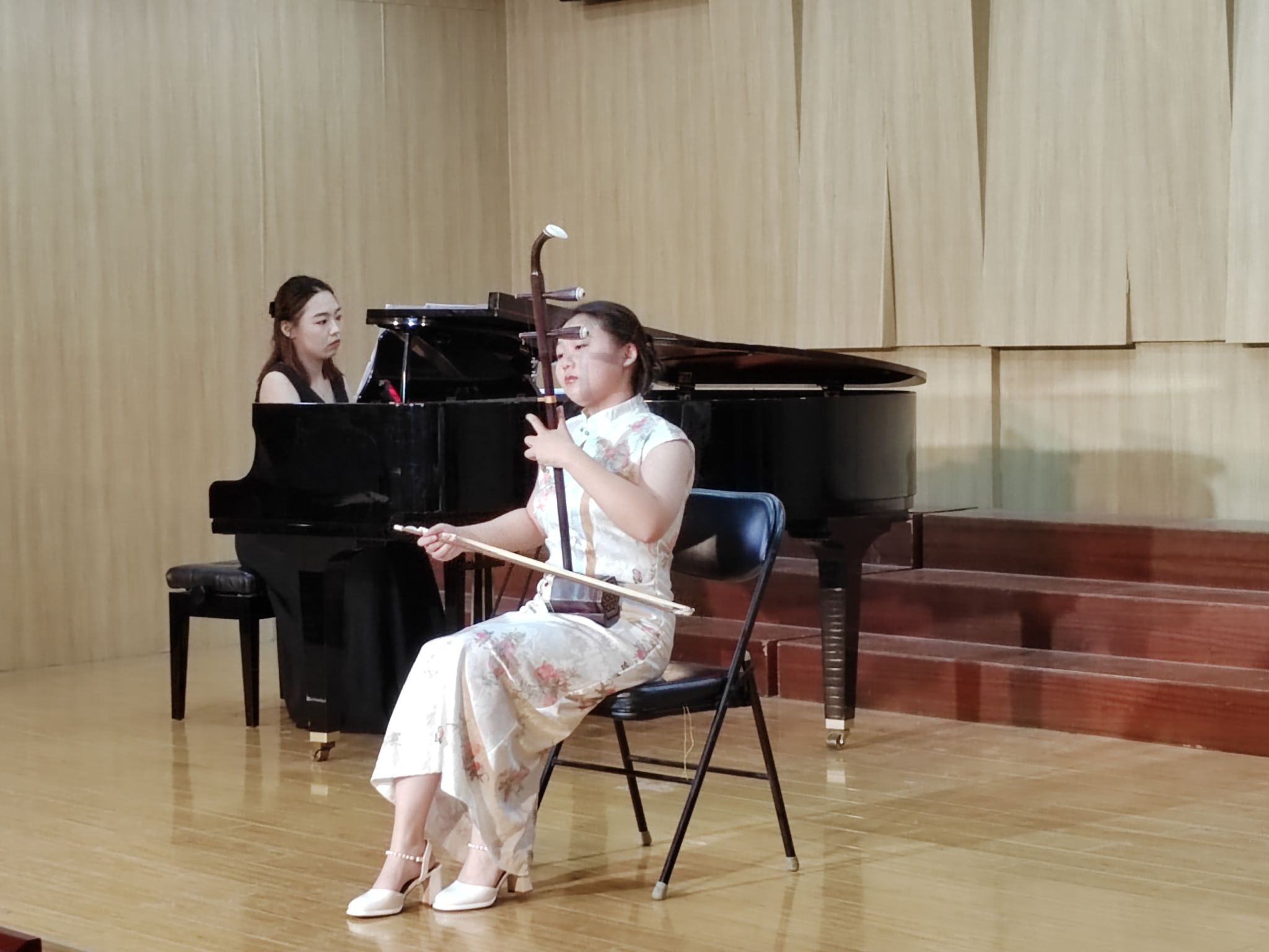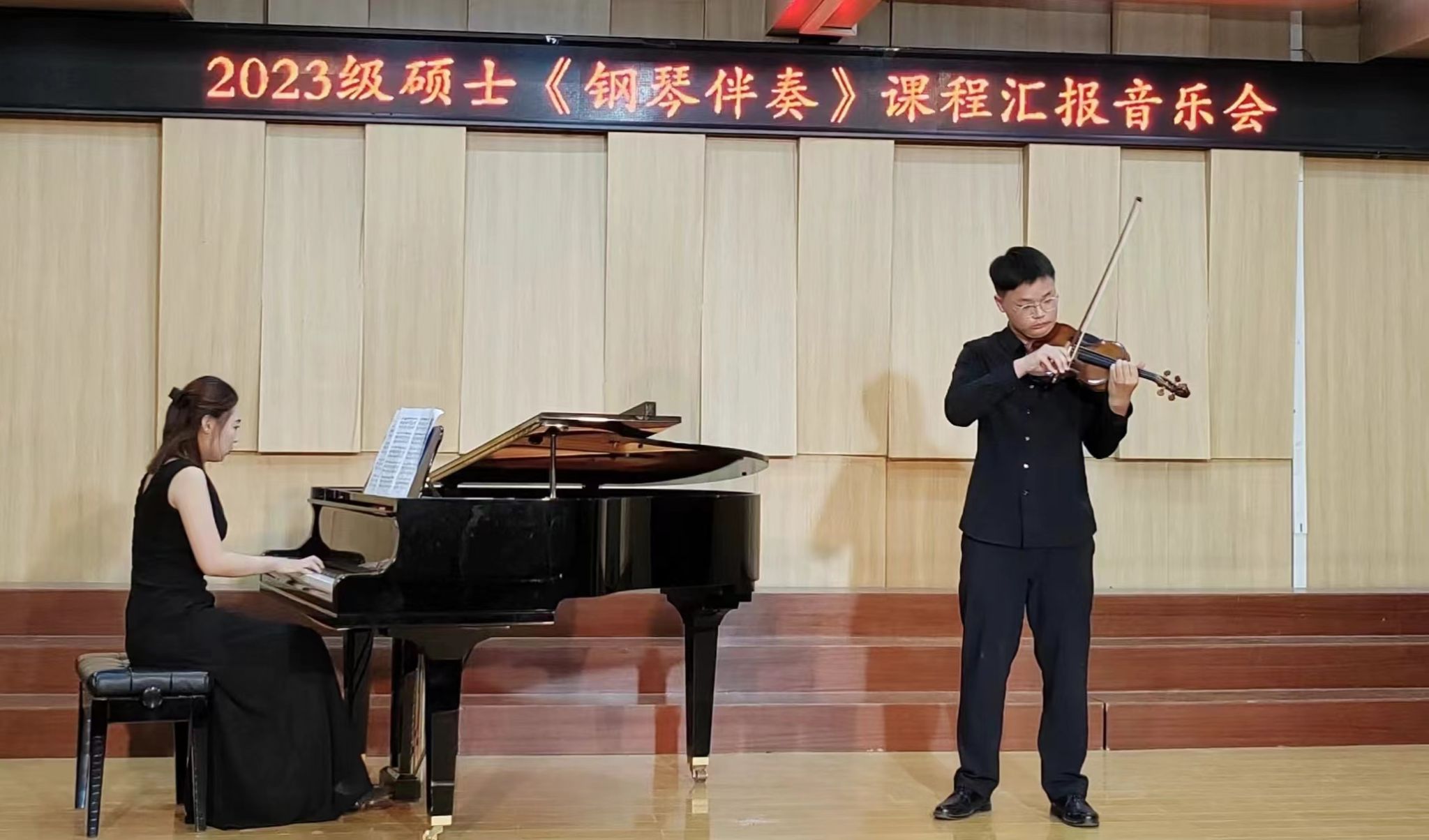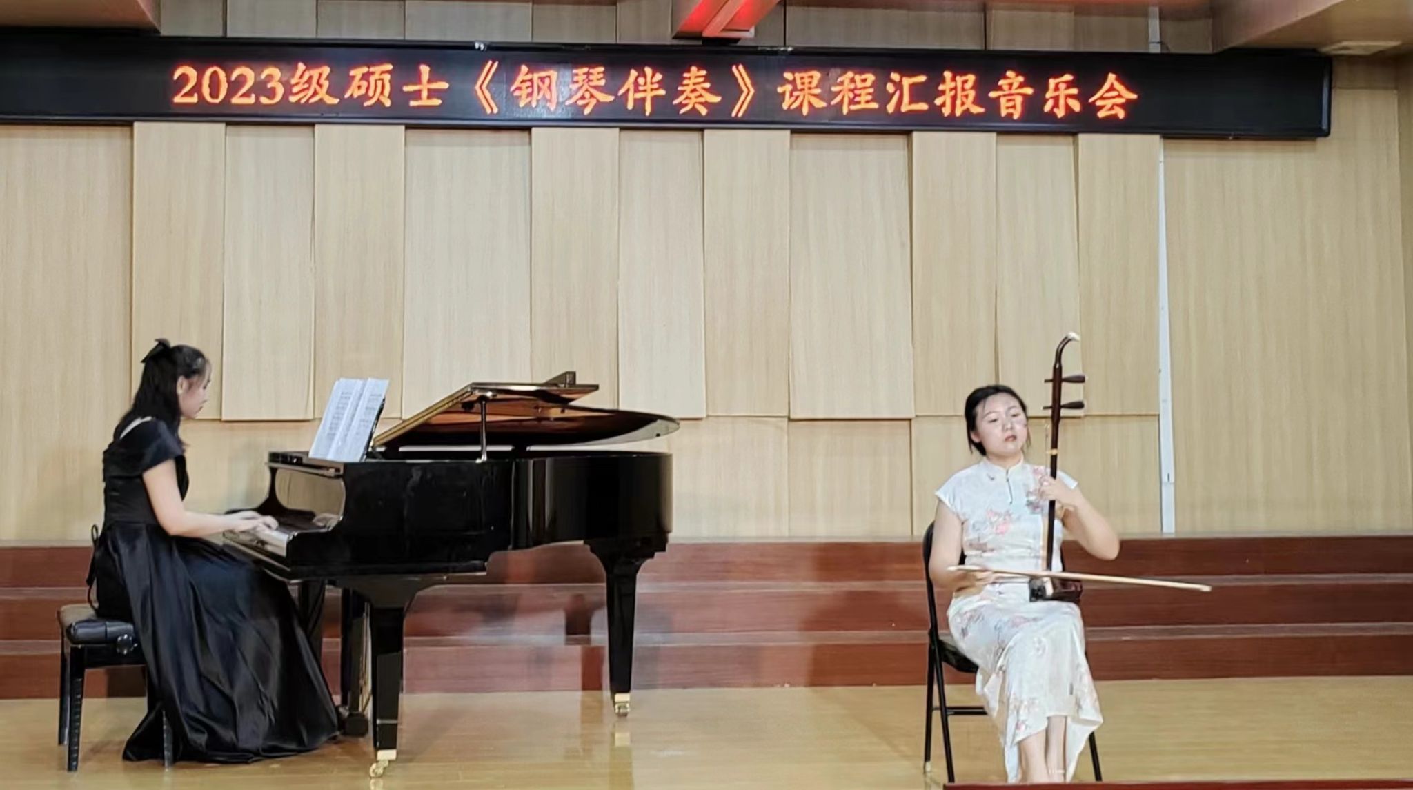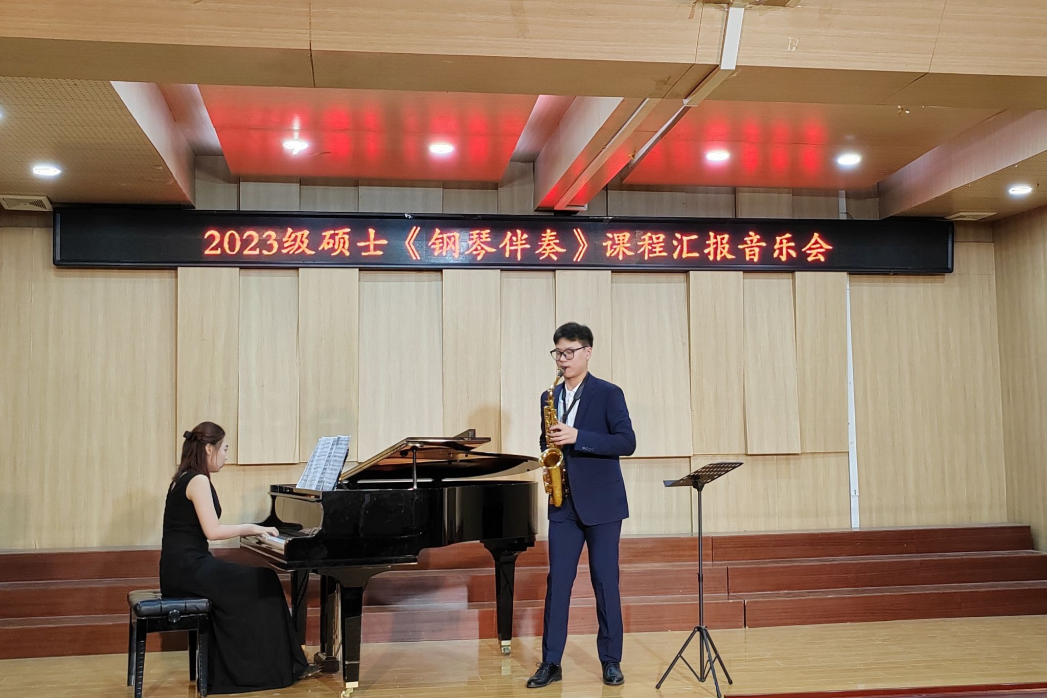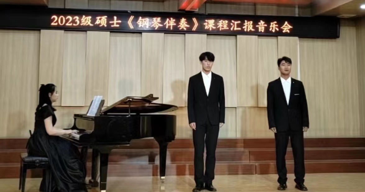 6月17日晚,由我院举办的2023级硕士《钢琴伴奏》结课汇报音乐会在文综楼六楼音乐厅成功举办。我院党委书记贾宝先、执行院长马安平、副院长王庆花和各系主任及部分老师共同观看了本场音乐会。