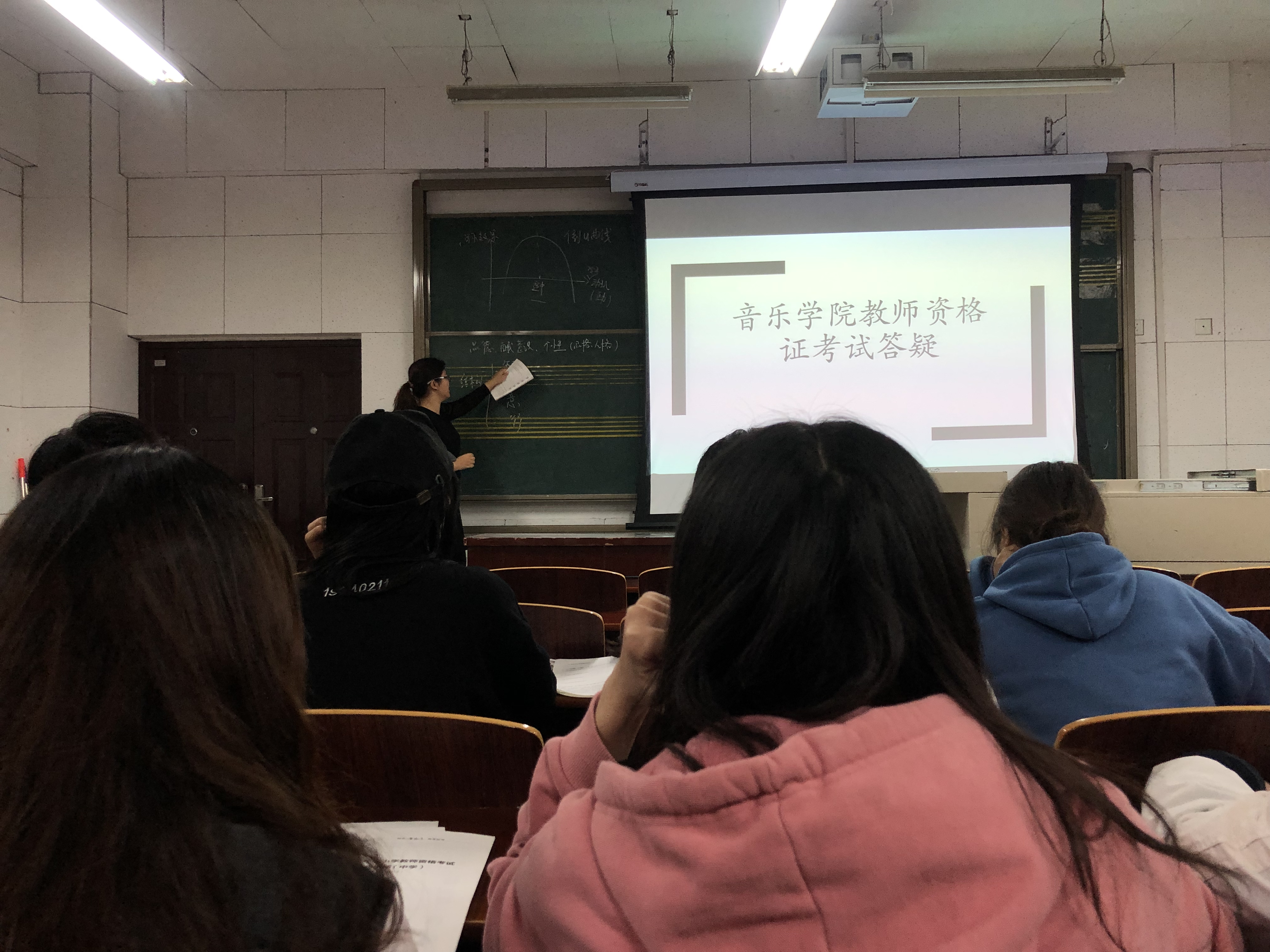 为方便同学们通过教师资格证考试,响应“不忘初心、牢记使命”主题教育中对每位党员参加志愿服务,为身边群众办实事好事的号召,我院辅导员陈慧洁于10月31日晚7点在文综楼620为同学们开展考试答疑会。