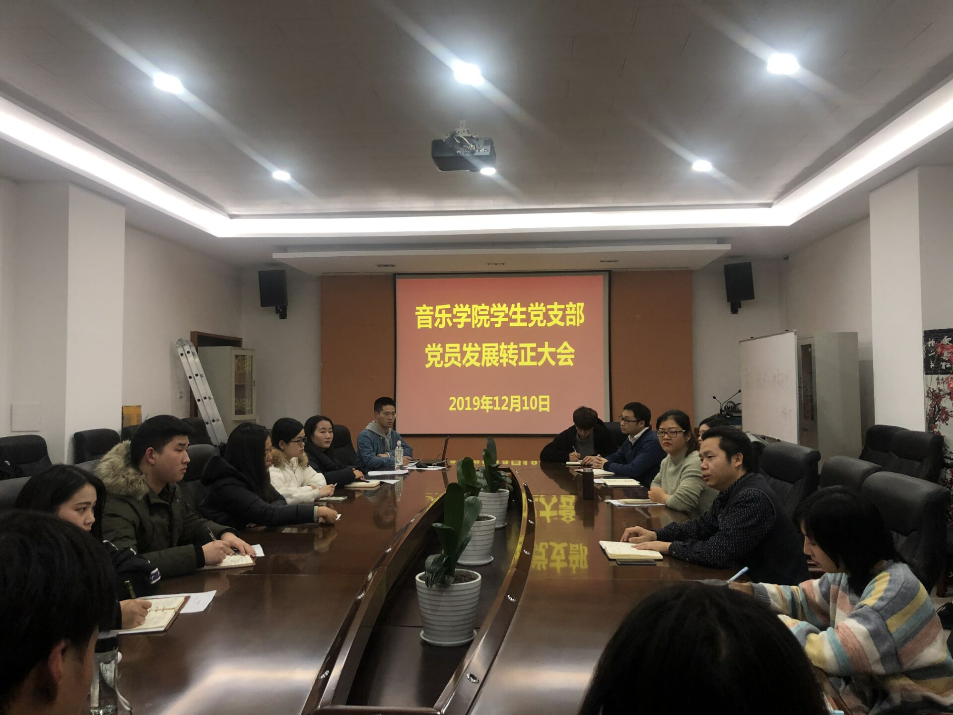 音乐学院学生党支部于2019年12月10日下午在学院会议室召开了关于接受预备党员、正式党员的支部大会,学生党支部全体党员和部分积极分子代表参加了本次会议。