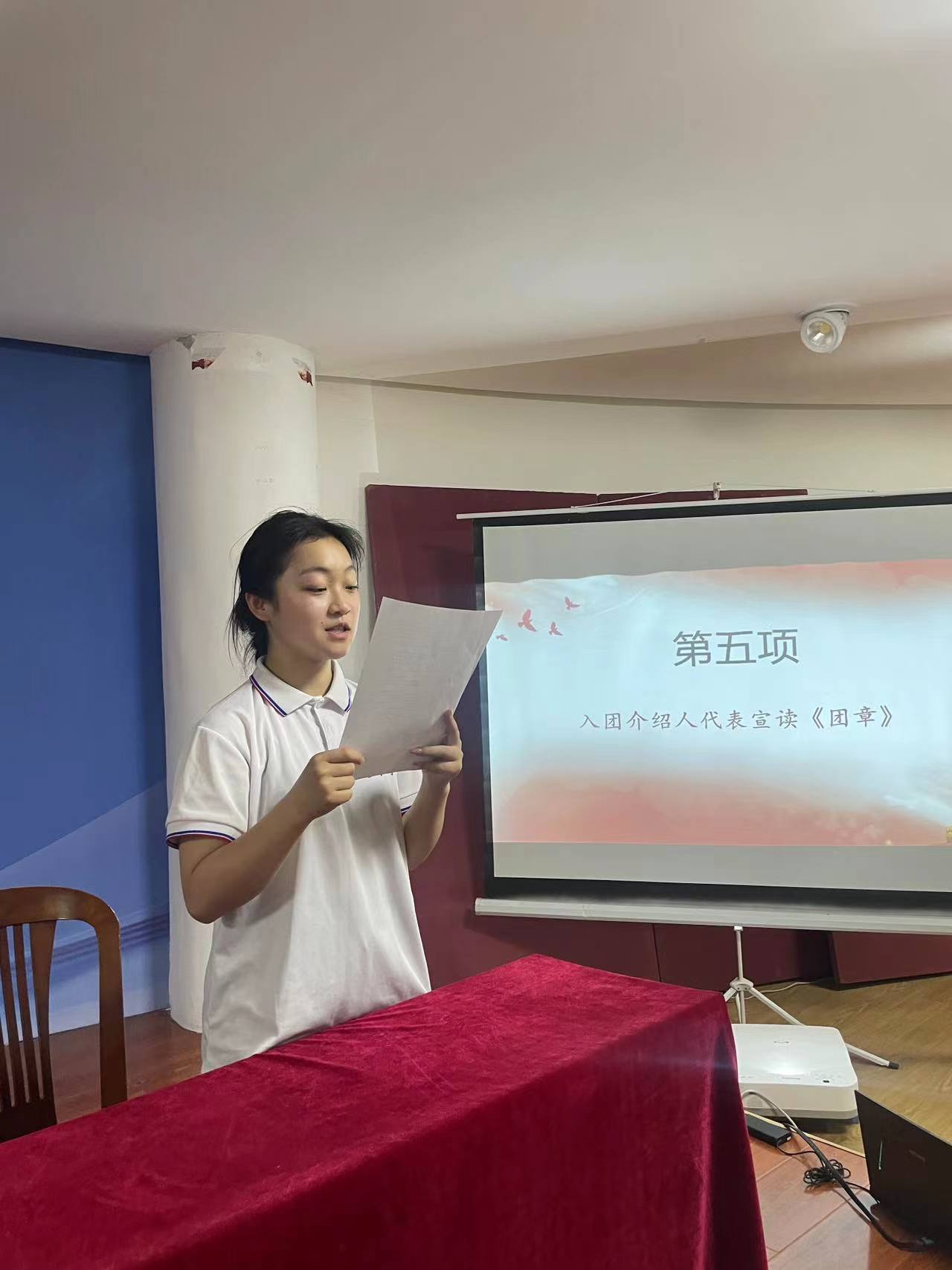 由入团介绍人代表聂欢欢宣读《团章》中有关团员的义务和权利的条款。